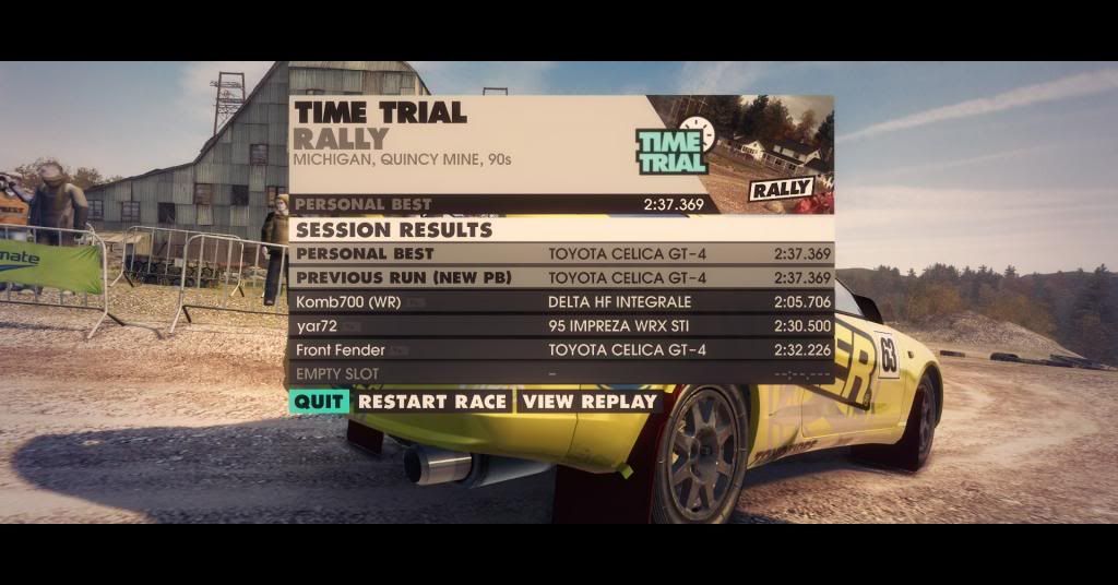 ImprezaRally 0 Posted May 20, 2014 Screw 90s and trailblazer.I gave up. Takin' the hit this round.Name: DEVILwithaCROSSTeam: GrakienStage 1 Time: 2:54.645Stage 2 Time: 2:37.369Stage 3 Time: 1:19.121[spoiler][/spoiler] Share this post Link to post Share on other sites