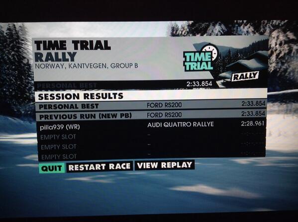 MastaVonBlasta 2 Posted May 27, 2014 I've only had an hour this week, but it was still fun. Ford RS200 felt too composed for Group B - I should've used Delta S4! :) Name: MastaVonBlastaTeam: Team VonBlasticStage 1: 2:33.572 [photo]Stage 2: 2:24.205 [photo]Stage 3: 0:55.454 [photo] Share this post Link to post Share on other sites